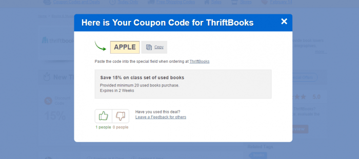 ThriftBooks Promo Codes. There is no minimum amount required in order to get the savings. Todays best Discount Code.
